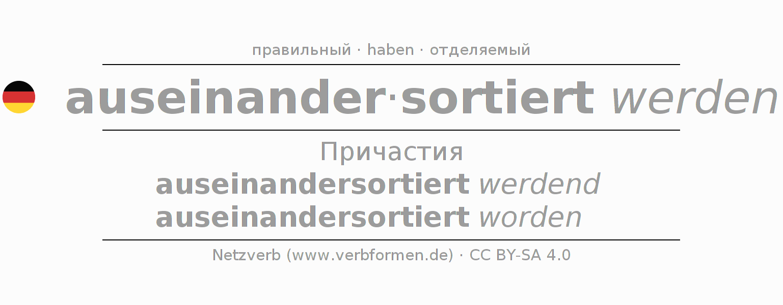 - Образование Партицип auseinandersortieren