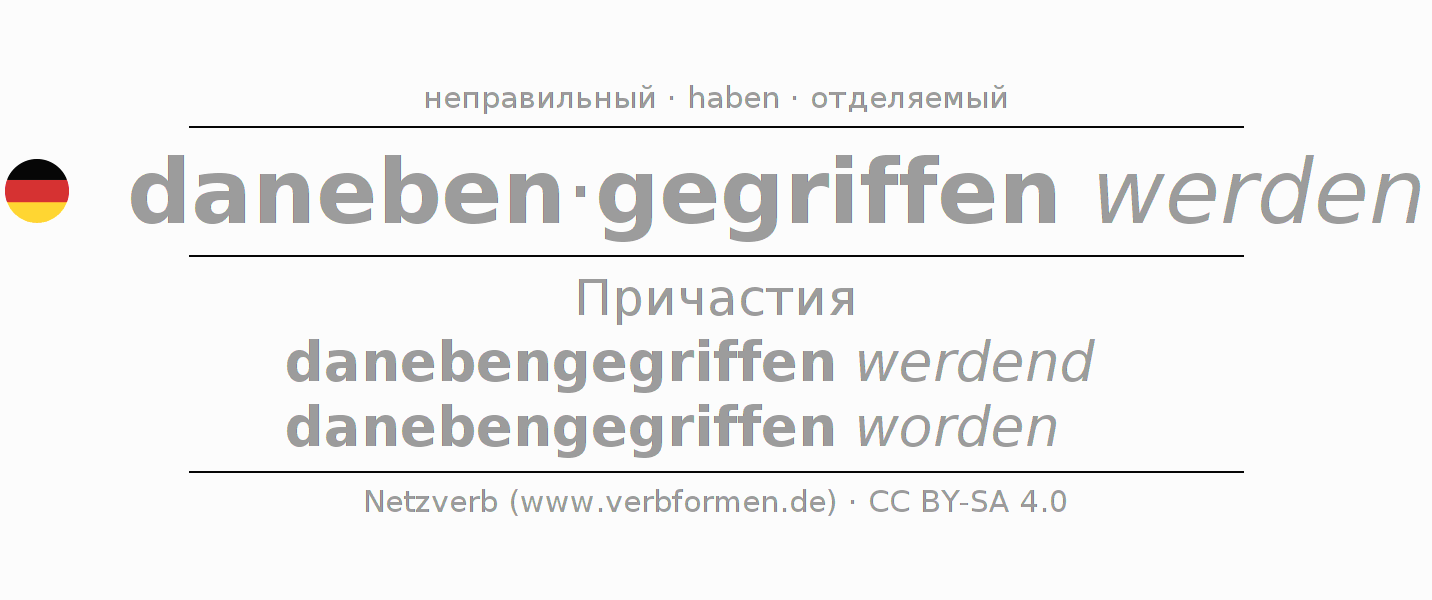 Этот глагол danebengreifen полностью спрягается во всех лицах и числах Партицип Презенс Перфект.