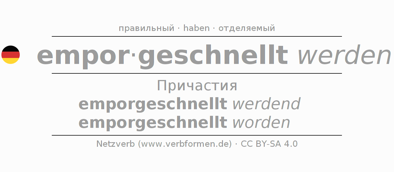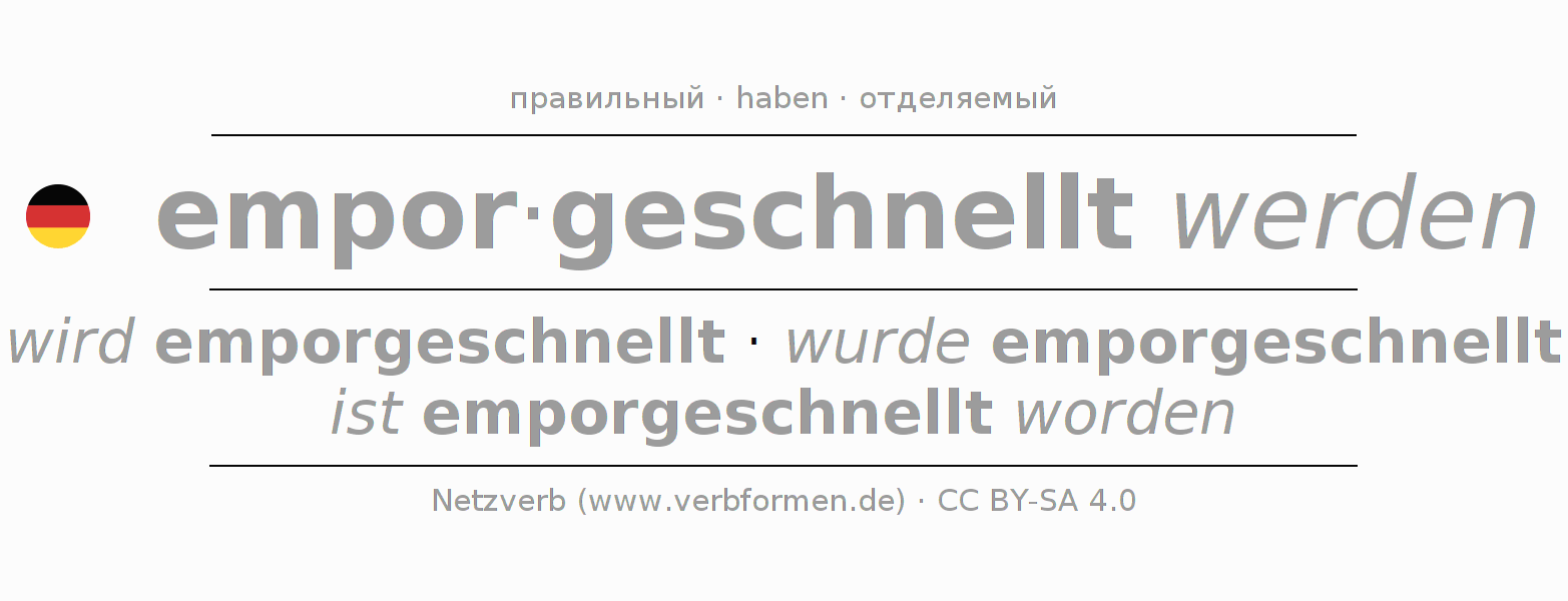 Этот глагол emporschnellen (hat) полностью спрягается во всех лицах и числах Партицип Презенс Перфект.