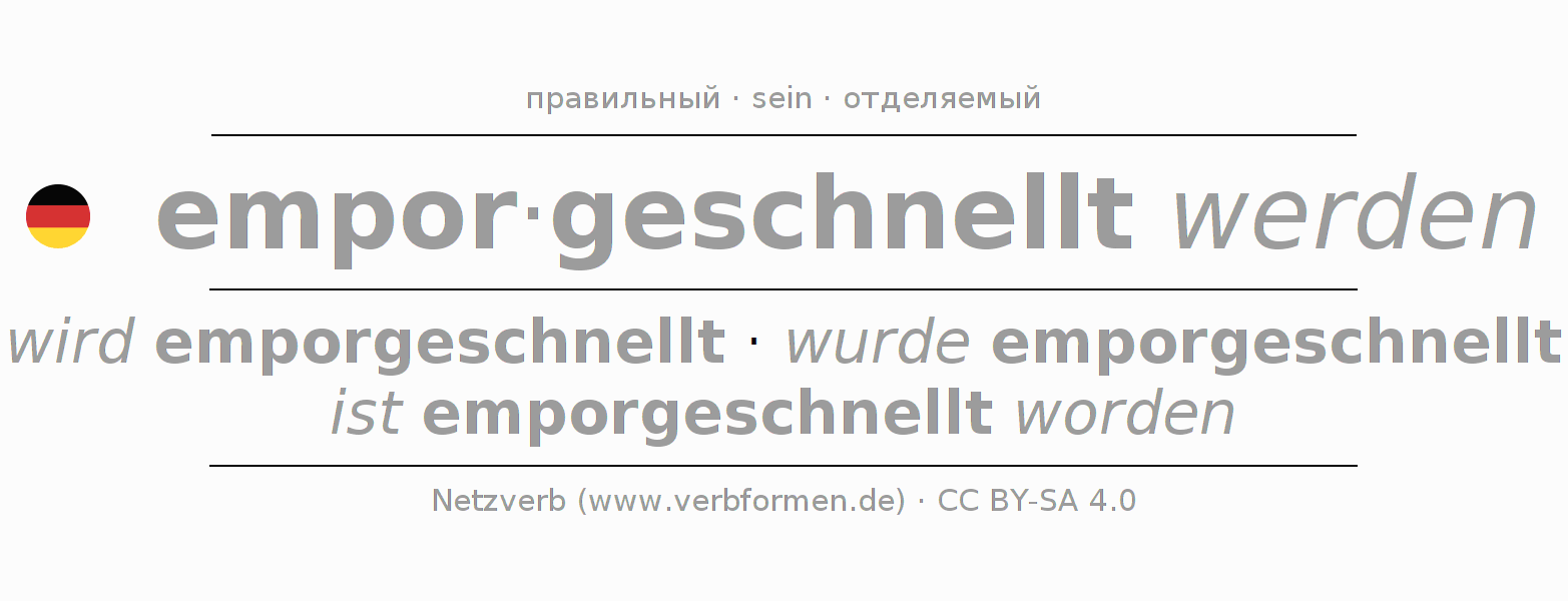 Этот глагол emporschnellen (ist) полностью спрягается во всех лицах и числах Партицип Презенс Перфект.