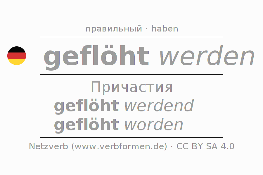Спряжение flöhen в Партицип Презенс Перфект часть речи Пассив с werden: geflöht werdend, geflöht worden.Образование этих форм происходит по определённым грамматическим правилам. Так же спрягаются простые глагольные формы flöhen в Партицип. Kомментарии ☆
