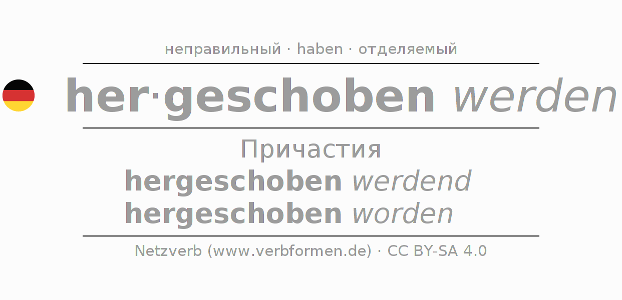 Этот глагол herschieben полностью спрягается во всех лицах и числах Партицип Презенс Перфект.