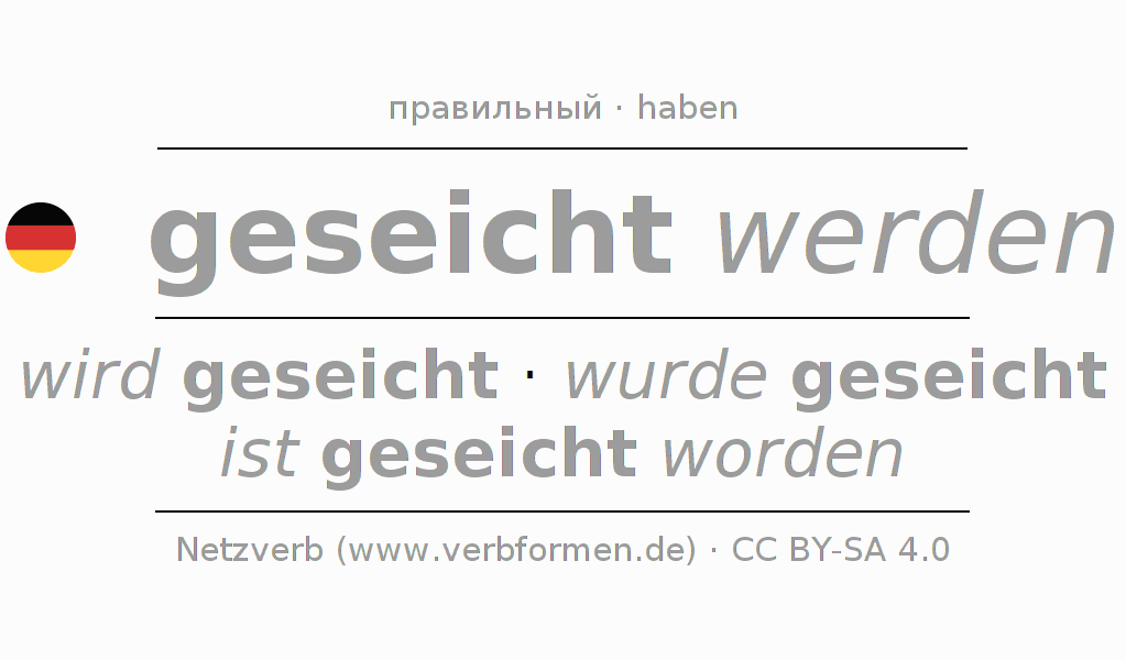 Спряжение seichen в Партицип Презенс Перфект часть речи Пассив с werden: geseicht werdend, geseicht worden.Образование этих форм происходит по определённым грамматическим правилам. Так же спрягаются простые глагольные формы seichen в Партицип. Kомментарии ☆