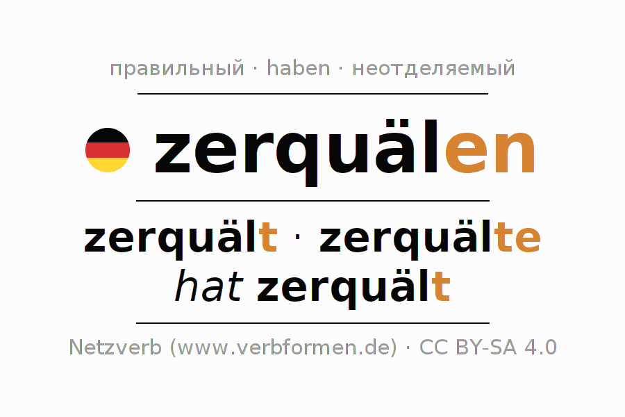 Формами причастия zerquälen (мучить, терзать) являются: {PARTIZIP 1}, {PARTIZIP 2}