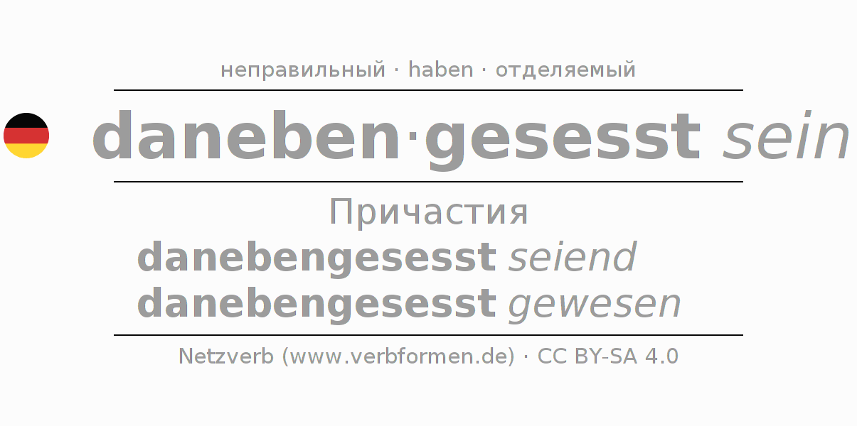 - Как спрягается danebensitzen в Партицип?