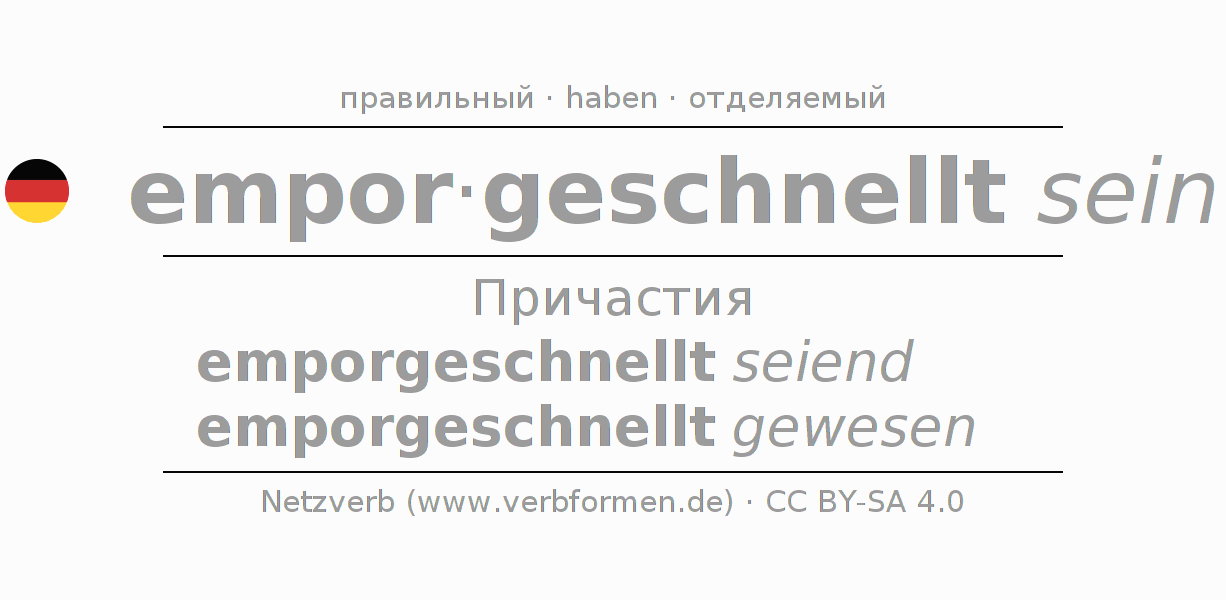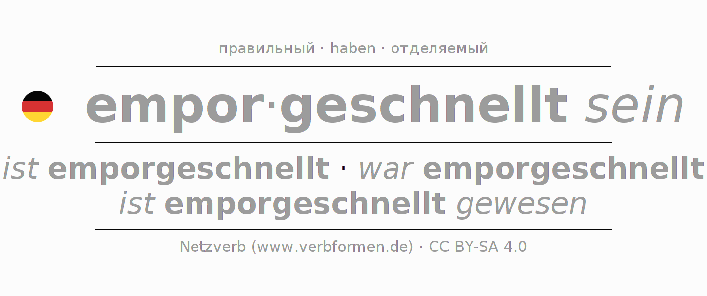 Этот глагол emporschnellen (hat) полностью спрягается во всех лицах и числах Партицип Презенс Перфект.