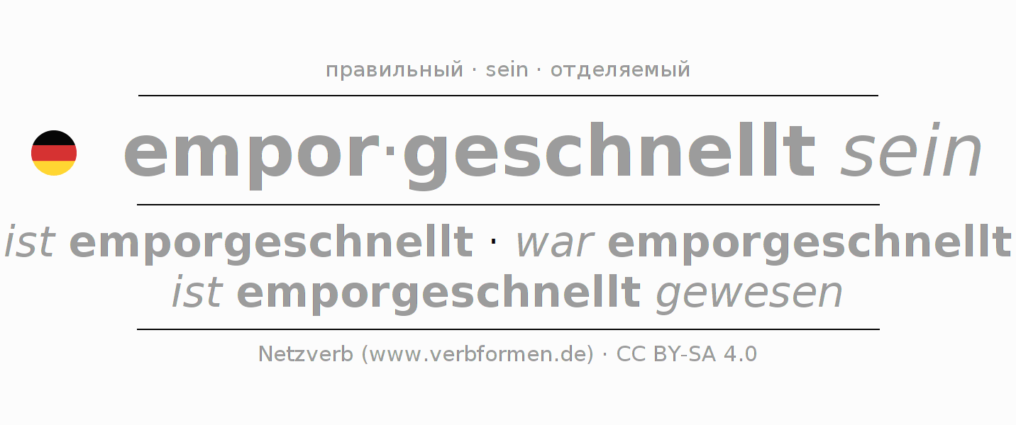Этот глагол emporschnellen (ist) полностью спрягается во всех лицах и числах Партицип Презенс Перфект.