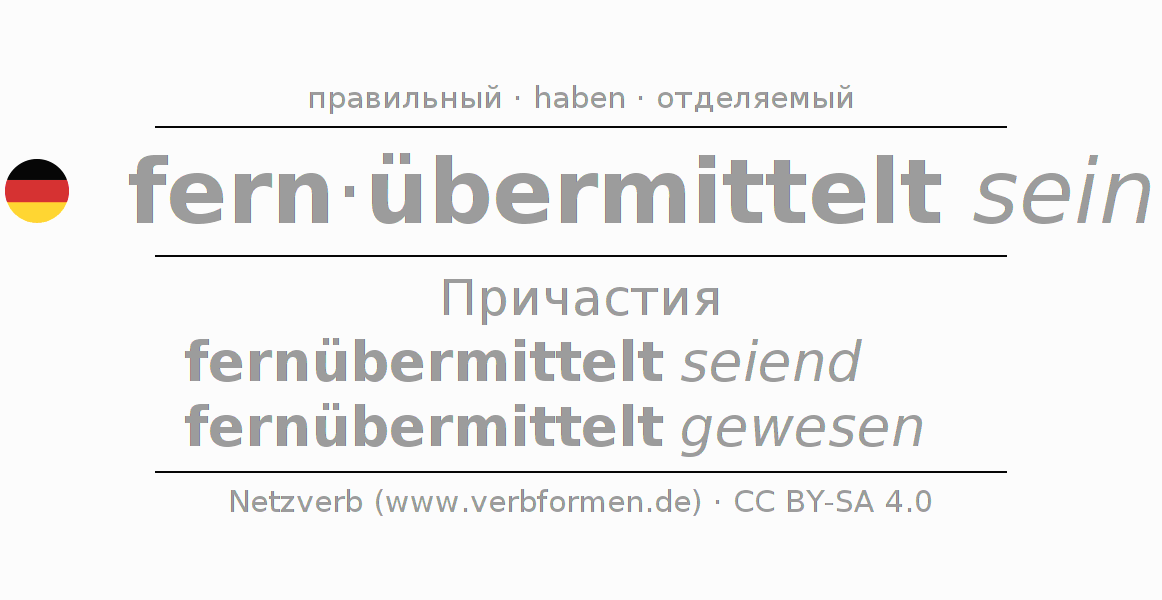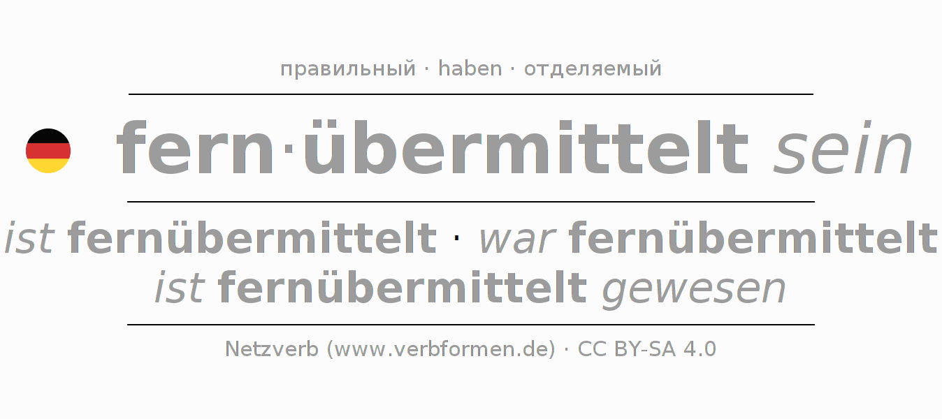 Этот глагол fernübermitteln полностью спрягается во всех лицах и числах Партицип Презенс Перфект.