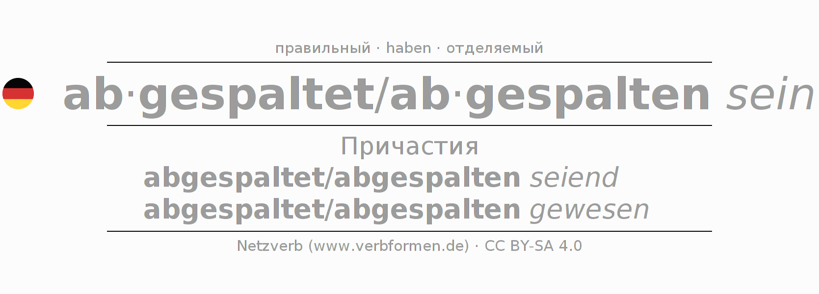 Этот глагол abspalten полностью спрягается во всех лицах и числах Партицип Презенс Перфект.