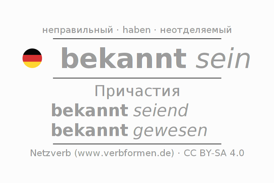 Спряжение bekennen в Партицип Презенс Перфект часть речи Пассив с sein: bekannt seiend, bekannt gewesen.Образование этих форм происходит по определённым грамматическим правилам. Так же спрягаются простые глагольные формы bekennen в Партицип. Kомментарии ☆
