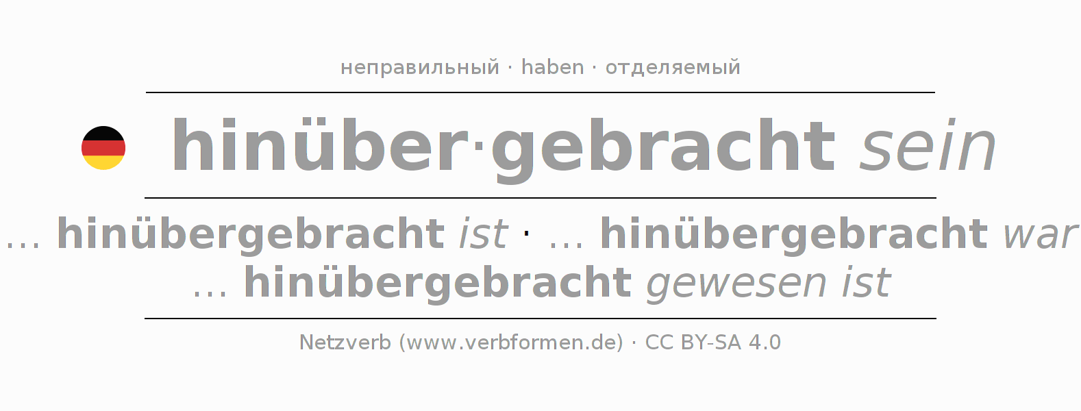 Этот глагол hinüberbringen полностью спрягается во всех лицах и числах Партицип Презенс Перфект.