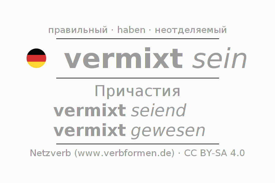 Этот глагол vermixen полностью спрягается во всех лицах и числах Партицип Презенс Перфект.