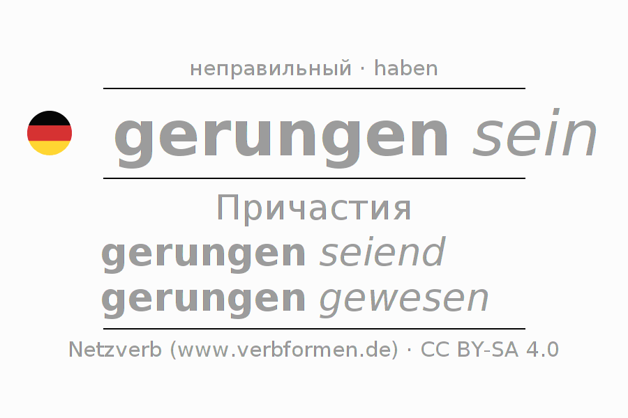 Спряжение ringen в Партицип Презенс Перфект часть речи Пассив с sein: gerungen seiend, gerungen gewesen.Образование этих форм происходит по определённым грамматическим правилам. Так же спрягаются простые глагольные формы ringen в Партицип. Kомментарии ☆