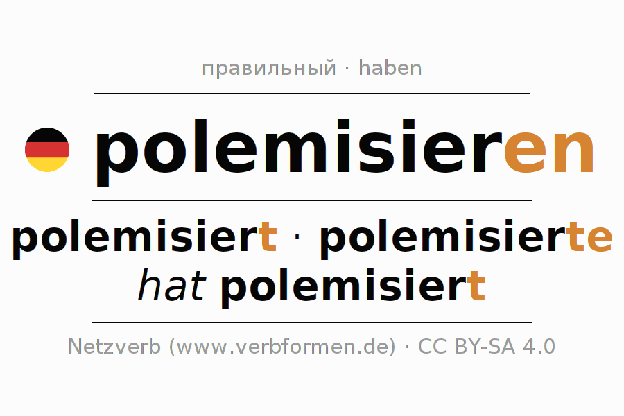 - Презенс: polemisier(e) (du), polemisieren wir, polemisiert (ihr), polemisieren Sie