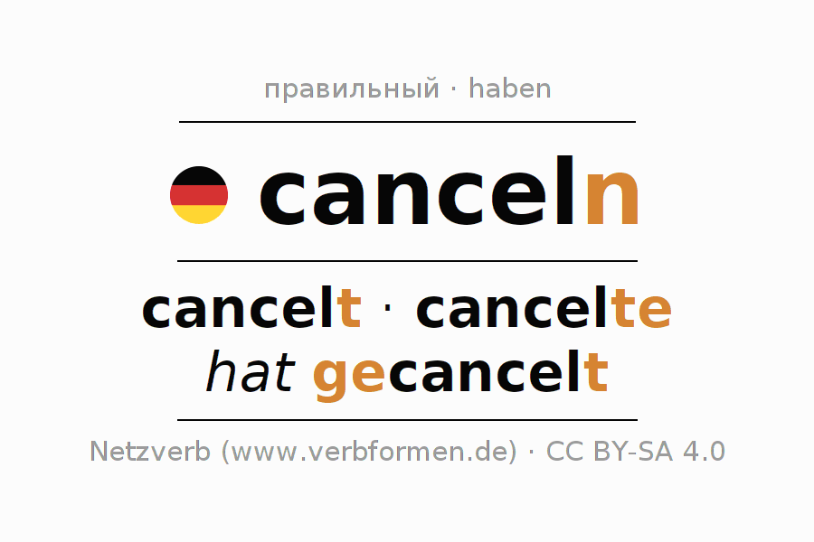 Примеры использования спряжения глаголов в canceln. При этом речь идёт о реальных предложениях и о предложениях из проекта Tatoeba. Для каждой спряженной формы будет отображаться пример с таким предложением. Глагольная форма будет при этом выделена. Если имеется несколько предложений, будет случайным образом выбран пример с немецким глаголом canceln. Чтобы понимать спряжение не только в примерах, но и в обучении, доступны листы с глаголом canceln.