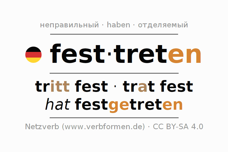 - Как спрягается festtreten в Императив?