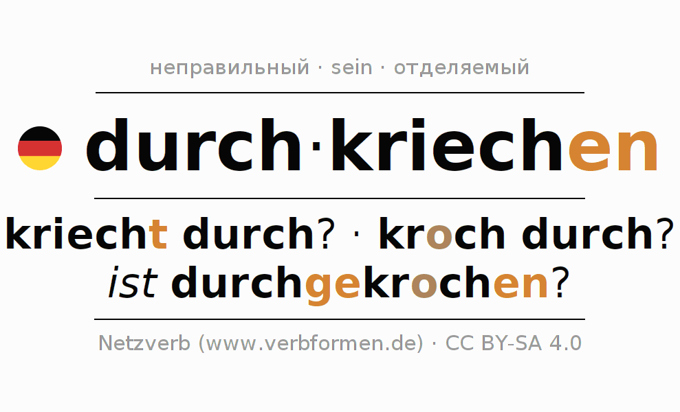 Примеры использования спряжения глаголов в durchkriechen. При этом речь идёт о реальных предложениях и о предложениях из проекта Tatoeba. Для каждой спряженной формы будет отображаться пример с таким предложением. Глагольная форма будет при этом выделена. Если имеется несколько предложений, будет случайным образом выбран пример с немецким глаголом durch-kriechen (ist). Чтобы понимать спряжение не только в примерах, но и в обучении, доступны листы с глаголом durchkriechen.