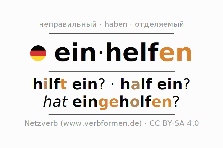 Значения и синонимы слова einhelfenПравила образования