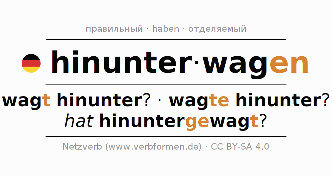 Значения и синонимы слова hinunterwagenПравила образования