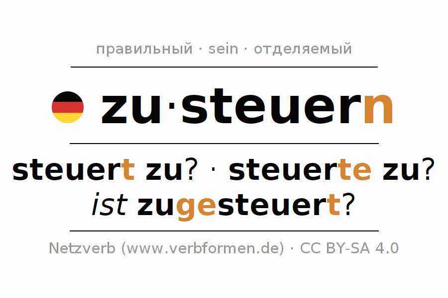 - Как спрягается zusteuern в Инфинитив?