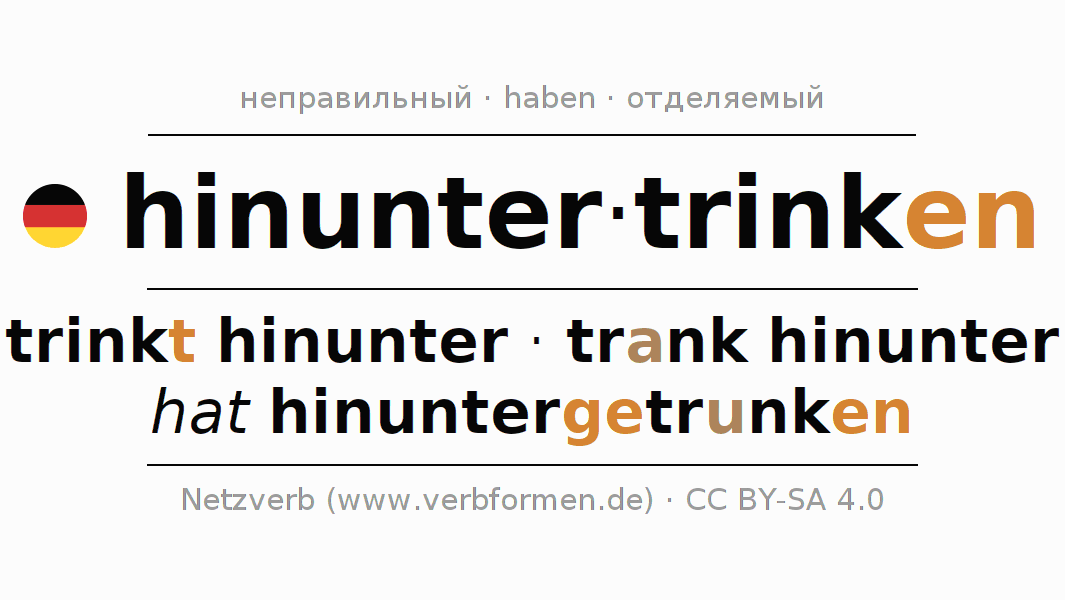Значения и синонимы слова hinuntertrinkenПравила образования