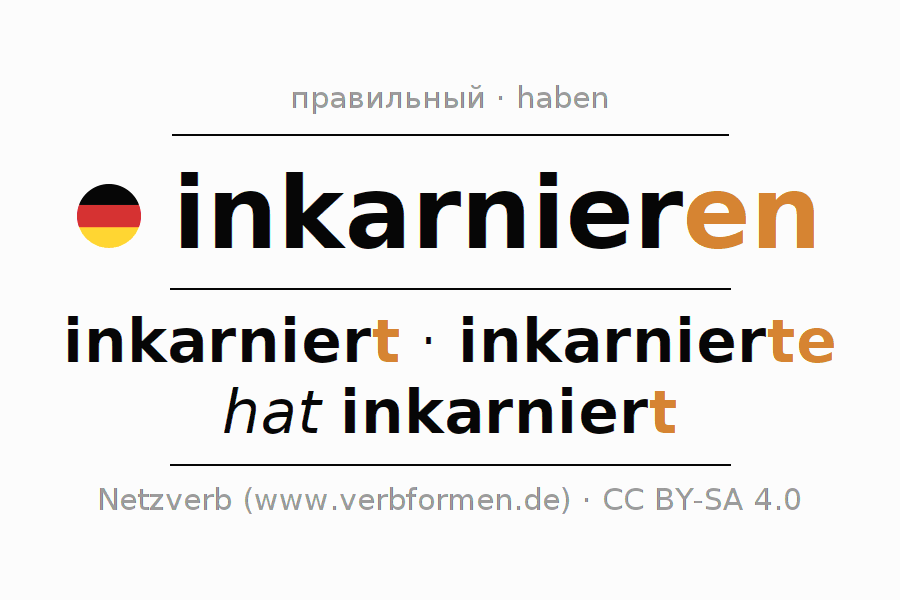 Примеры использования спряжения глаголов в inkarnieren. При этом речь идёт о реальных предложениях и о предложениях из проекта Tatoeba. Для каждой спряженной формы будет отображаться пример с таким предложением. Глагольная форма будет при этом выделена. Если имеется несколько предложений, будет случайным образом выбран пример с немецким глаголом inkarnieren. Чтобы понимать спряжение не только в примерах, но и в обучении, доступны листы с глаголом inkarnieren.