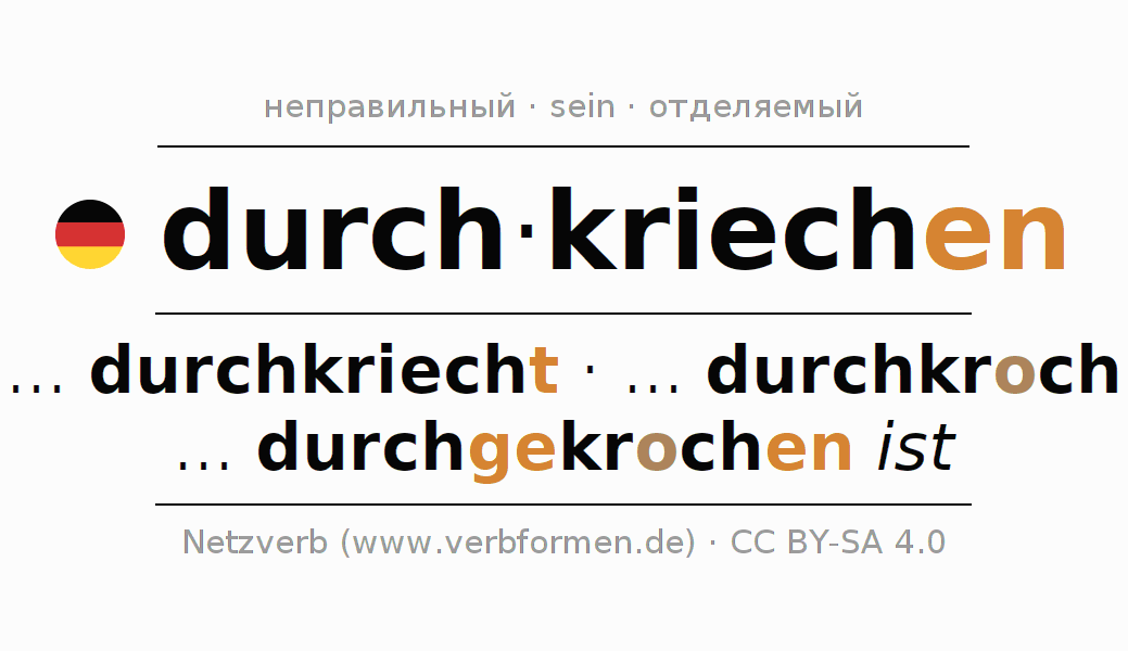 Примеры использования спряжения глаголов в durchkriechen. При этом речь идёт о реальных предложениях и о предложениях из проекта Tatoeba. Для каждой спряженной формы будет отображаться пример с таким предложением. Глагольная форма будет при этом выделена. Если имеется несколько предложений, будет случайным образом выбран пример с немецким глаголом durch-kriechen (ist). Чтобы понимать спряжение не только в примерах, но и в обучении, доступны листы с глаголом durchkriechen.