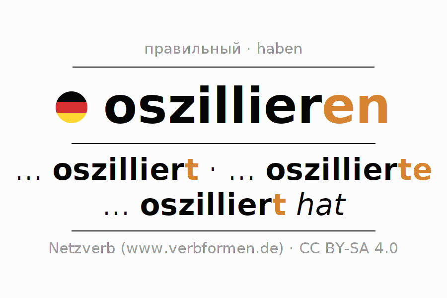 Примеры использования спряжения глаголов в oszillieren. При этом речь идёт о реальных предложениях и о предложениях из проекта Tatoeba. Для каждой спряженной формы будет отображаться пример с таким предложением. Глагольная форма будет при этом выделена. Если имеется несколько предложений, будет случайным образом выбран пример с немецким глаголом oszillieren. Чтобы понимать спряжение не только в примерах, но и в обучении, доступны листы с глаголом oszillieren.