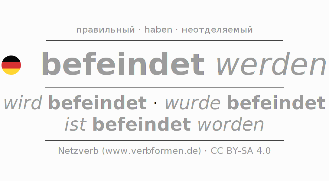 Примеры использования спряжения глаголов в befeinden. При этом речь идёт о реальных предложениях и о предложениях из проекта Tatoeba. Для каждой спряженной формы будет отображаться пример с таким предложением. Глагольная форма будет при этом выделена. Если имеется несколько предложений, будет случайным образом выбран пример с немецким глаголом befeinden. Чтобы понимать спряжение не только в примерах, но и в обучении, доступны листы с глаголом befeinden.