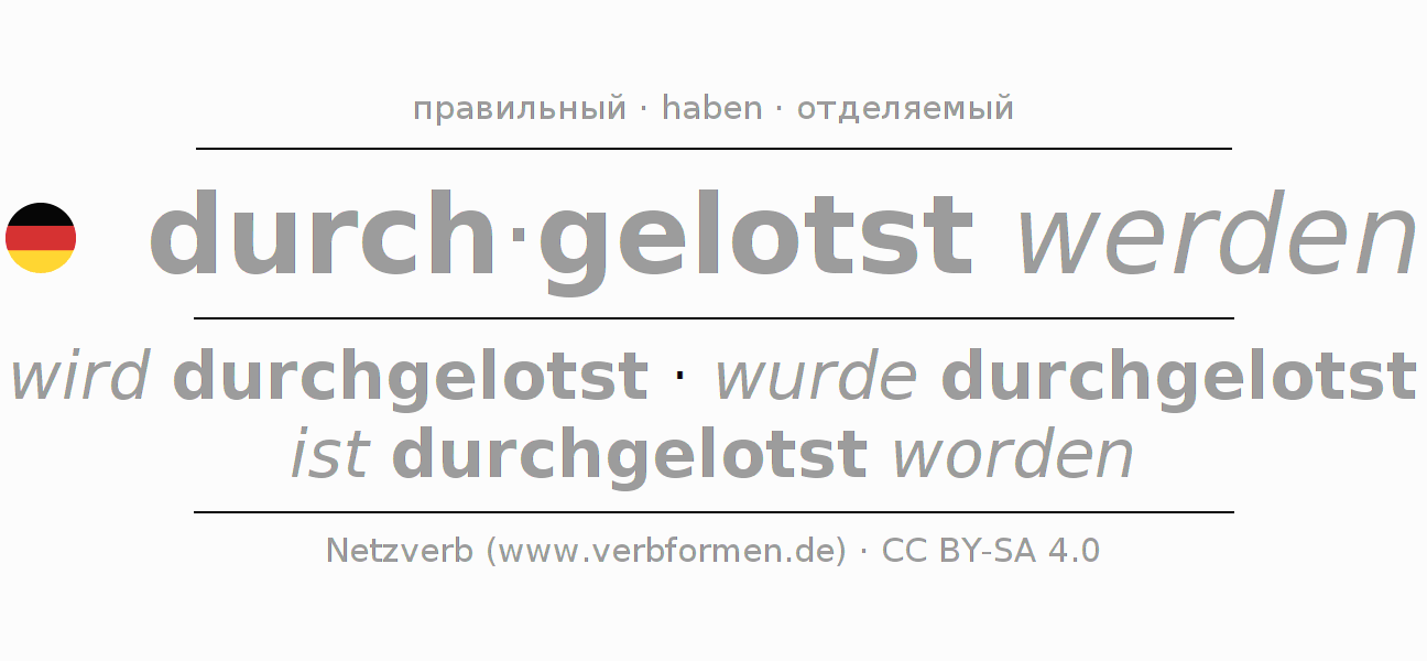 Примеры использования спряжения глаголов в durchlotsen. При этом речь идёт о реальных предложениях и о предложениях из проекта Tatoeba. Для каждой спряженной формы будет отображаться пример с таким предложением. Глагольная форма будет при этом выделена. Если имеется несколько предложений, будет случайным образом выбран пример с немецким глаголом durchlotsen. Чтобы понимать спряжение не только в примерах, но и в обучении, доступны листы с глаголом durchlotsen.