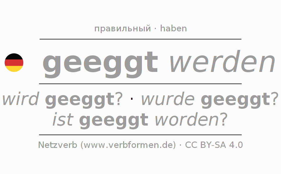 Примеры использования спряжения глаголов в eggen. При этом речь идёт о реальных предложениях и о предложениях из проекта Tatoeba. Для каждой спряженной формы будет отображаться пример с таким предложением. Глагольная форма будет при этом выделена. Если имеется несколько предложений, будет случайным образом выбран пример с немецким глаголом eggen. Чтобы понимать спряжение не только в примерах, но и в обучении, доступны листы с глаголом eggen.