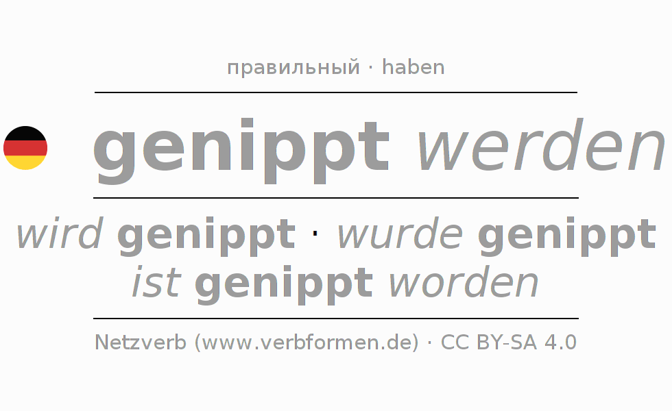 Примеры использования спряжения глаголов в nippen. При этом речь идёт о реальных предложениях и о предложениях из проекта Tatoeba. Для каждой спряженной формы будет отображаться пример с таким предложением. Глагольная форма будет при этом выделена. Если имеется несколько предложений, будет случайным образом выбран пример с немецким глаголом nippen. Чтобы понимать спряжение не только в примерах, но и в обучении, доступны листы с глаголом nippen.