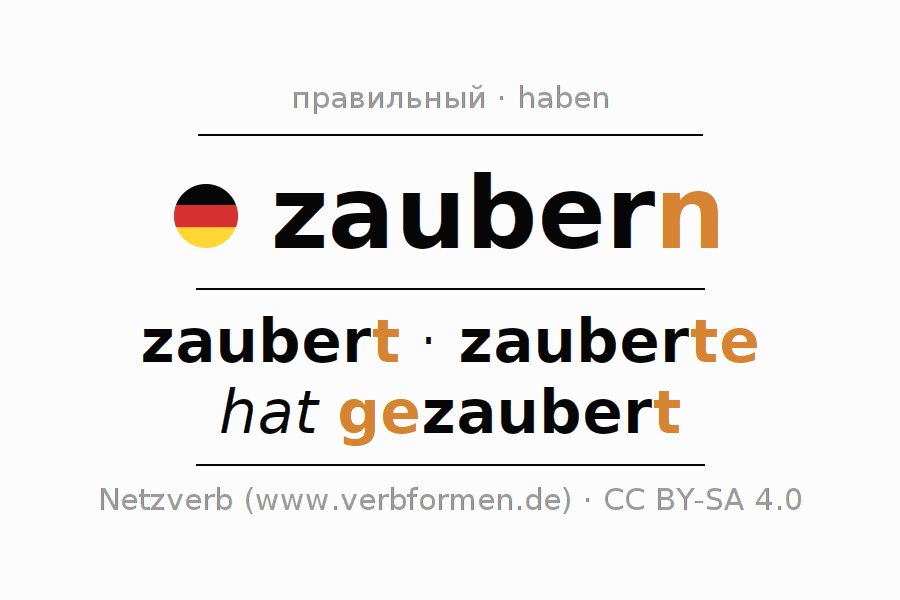Примеры использования спряжения глаголов в zaubern. При этом речь идёт о реальных предложениях и о предложениях из проекта Tatoeba. Для каждой спряженной формы будет отображаться пример с таким предложением. Глагольная форма будет при этом выделена. Если имеется несколько предложений, будет случайным образом выбран пример с немецким глаголом zaubern. Чтобы понимать спряжение не только в примерах, но и в обучении, доступны листы с глаголом zaubern.