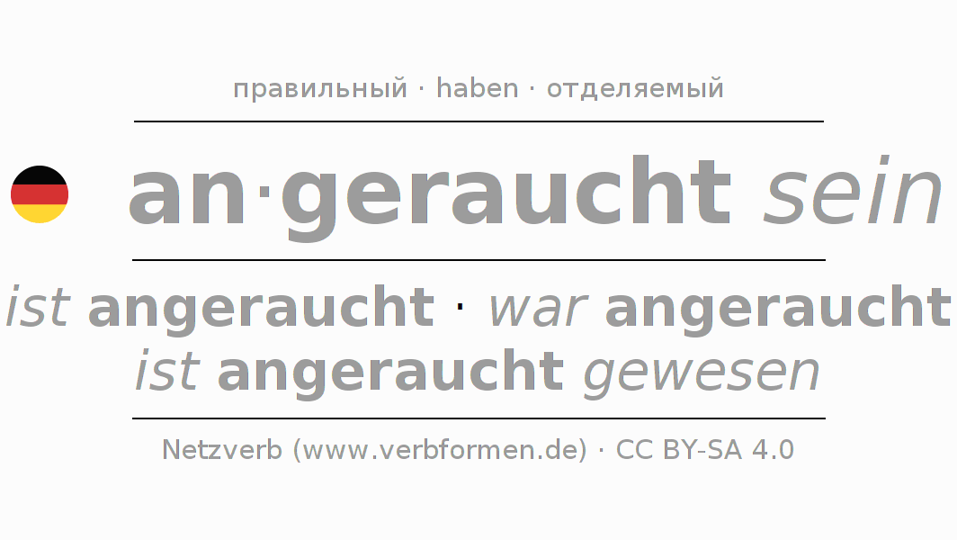 Примеры использования спряжения глаголов в anrauchen. При этом речь идёт о реальных предложениях и о предложениях из проекта Tatoeba. Для каждой спряженной формы будет отображаться пример с таким предложением. Глагольная форма будет при этом выделена. Если имеется несколько предложений, будет случайным образом выбран пример с немецким глаголом anrauchen. Чтобы понимать спряжение не только в примерах, но и в обучении, доступны листы с глаголом anrauchen.