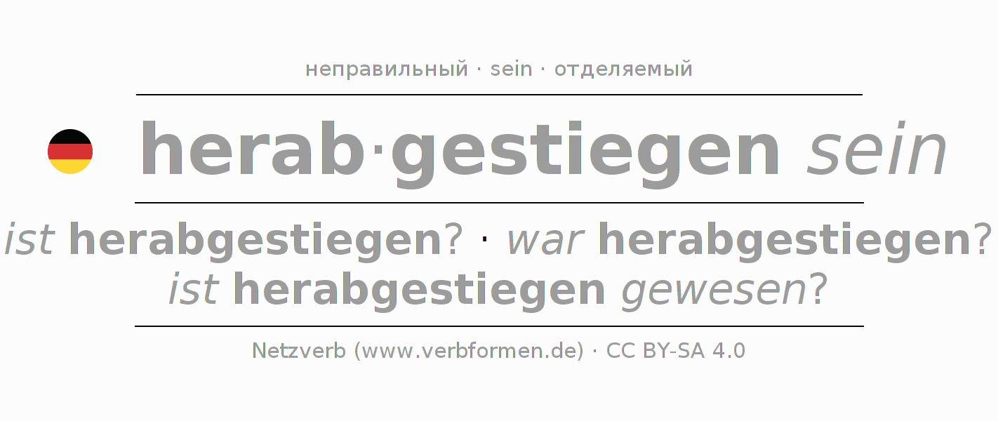 Значения и синонимы слова herabsteigenПравила образования