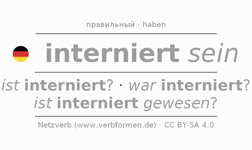 Примеры использования спряжения глаголов в internieren. При этом речь идёт о реальных предложениях и о предложениях из проекта Tatoeba. Для каждой спряженной формы будет отображаться пример с таким предложением. Глагольная форма будет при этом выделена. Если имеется несколько предложений, будет случайным образом выбран пример с немецким глаголом internieren. Чтобы понимать спряжение не только в примерах, но и в обучении, доступны листы с глаголом internieren.