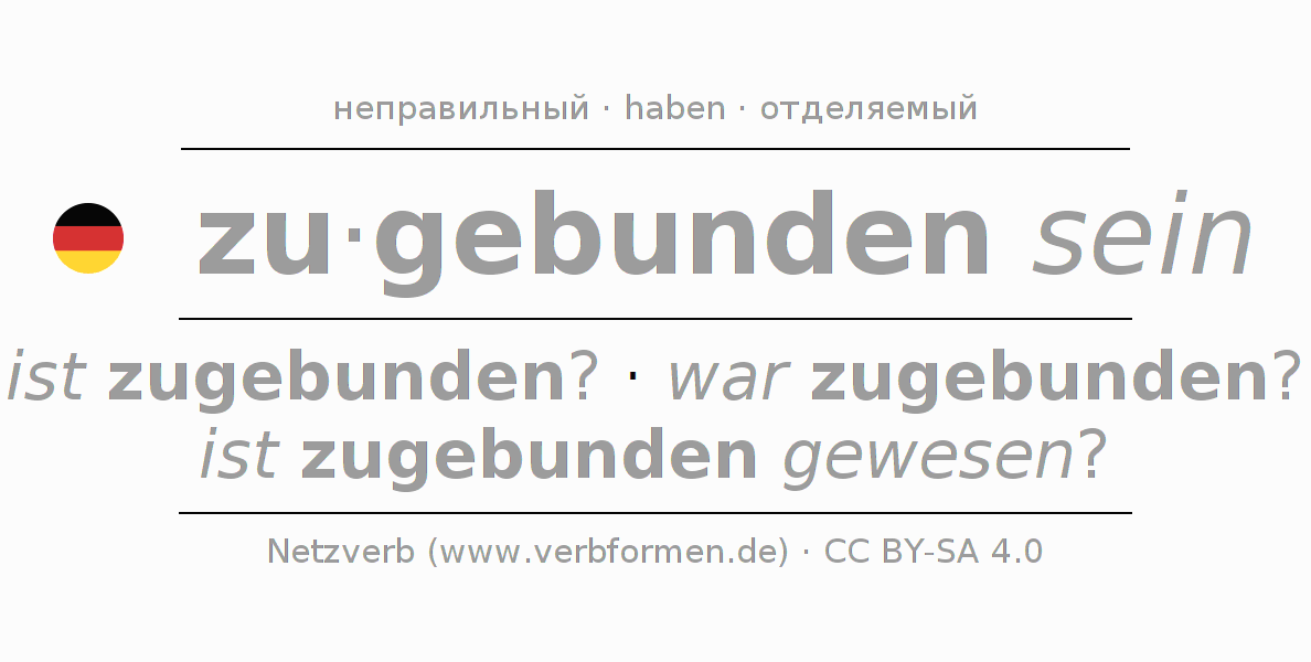 Примеры использования спряжения глаголов в zubinden. При этом речь идёт о реальных предложениях и о предложениях из проекта Tatoeba. Для каждой спряженной формы будет отображаться пример с таким предложением. Глагольная форма будет при этом выделена. Если имеется несколько предложений, будет случайным образом выбран пример с немецким глаголом zubinden. Чтобы понимать спряжение не только в примерах, но и в обучении, доступны листы с глаголом zubinden.
