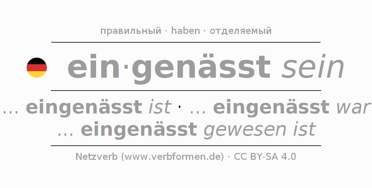 Примеры употребления глагола einnässen в предложениях в изъявительном наклонении Пассив с sein