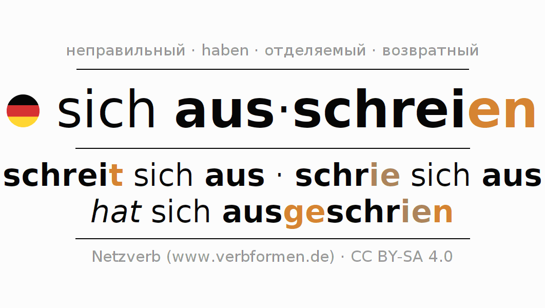 Все временные формы глагола и отглагольных форм sich ausschreien