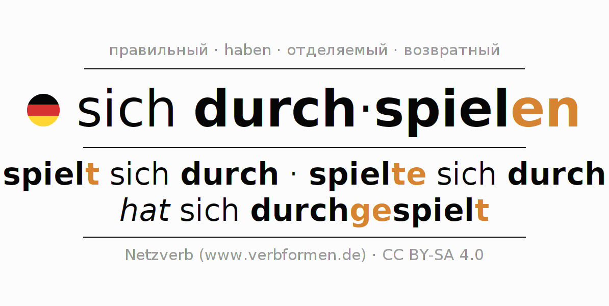 spielt sich durch · spielte sich durch · hat sich durchgespielt