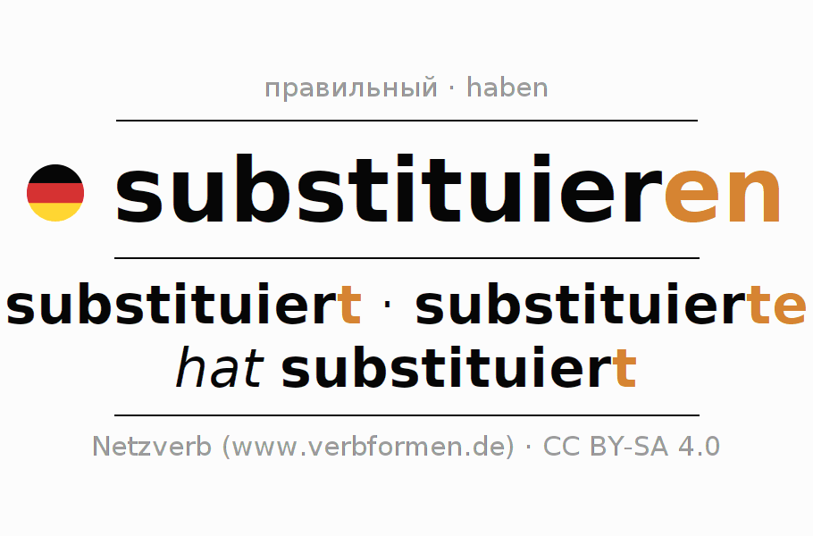 - Презенс: substituier(e) (du), substituieren wir, substituiert (ihr), substituieren Sie