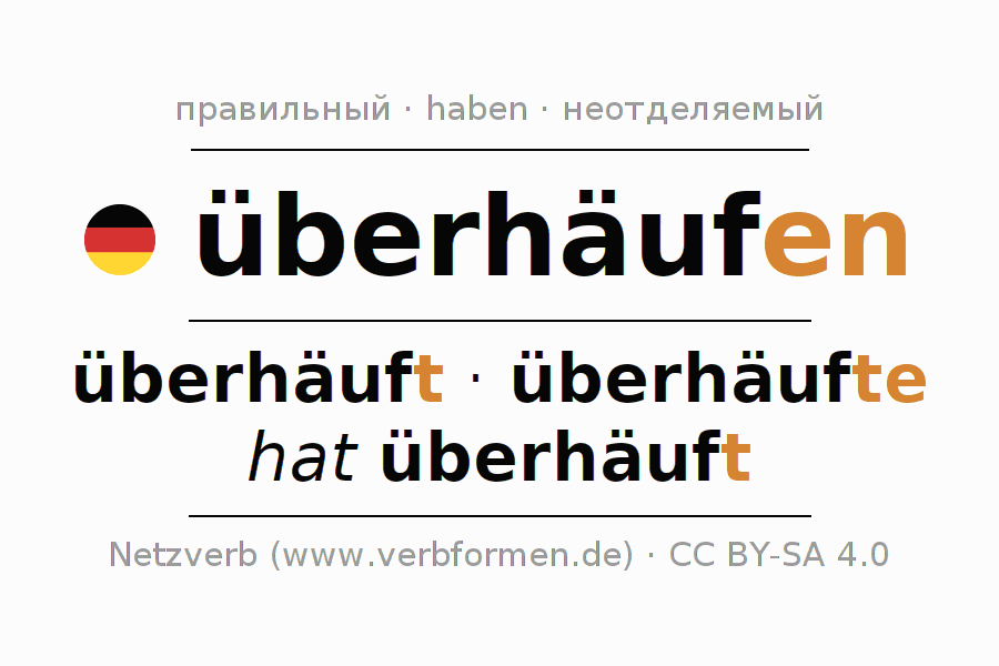 Простые формы спряжения глаголов в презенсе, претеритуме, императиве и конъюнктиве überhäufen