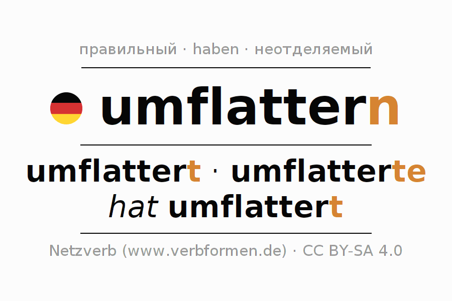 Простые формы спряжения глаголов в презенсе, претеритуме, императиве и конъюнктиве umflattern