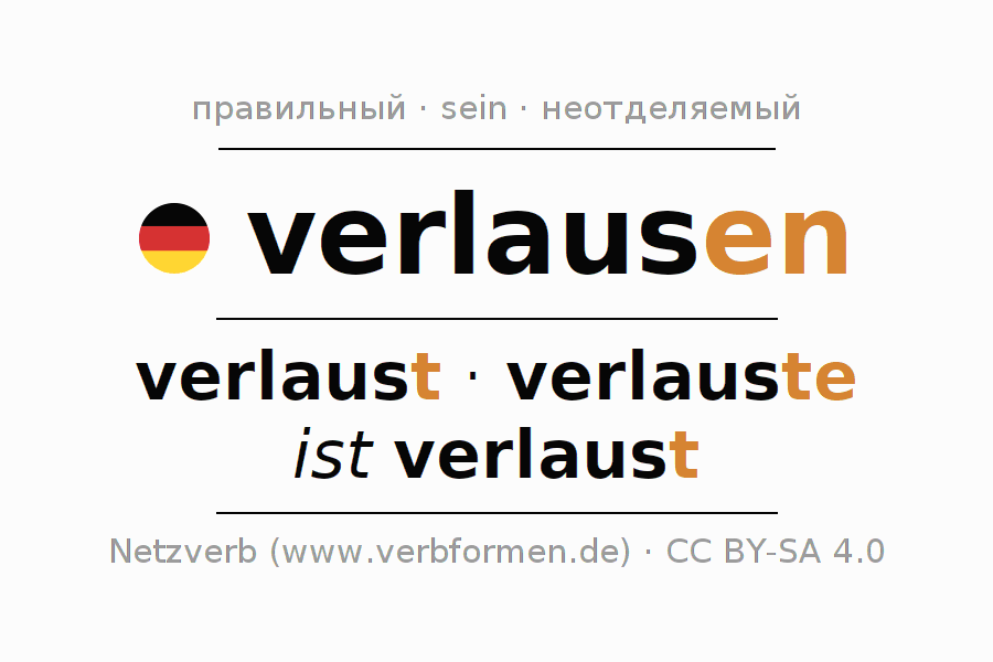 - Перфект: ich bin verlaust, du bist verlaust, er ist verlaust, wir sind verlaust, ihr seid verlaust, sie sind verlaust
