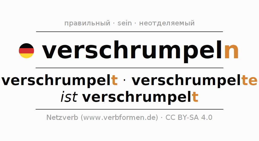 Все временные формы глагола и отглагольных форм verschrumpeln