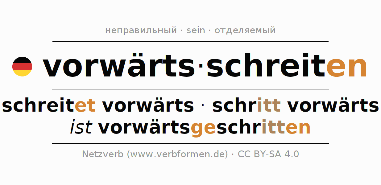 Все временные формы глагола и отглагольных форм vorwärtsschreiten