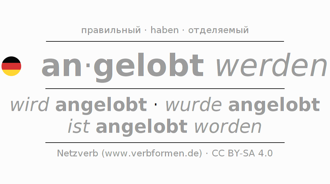 Все временные формы глагола и отглагольных форм angeloben