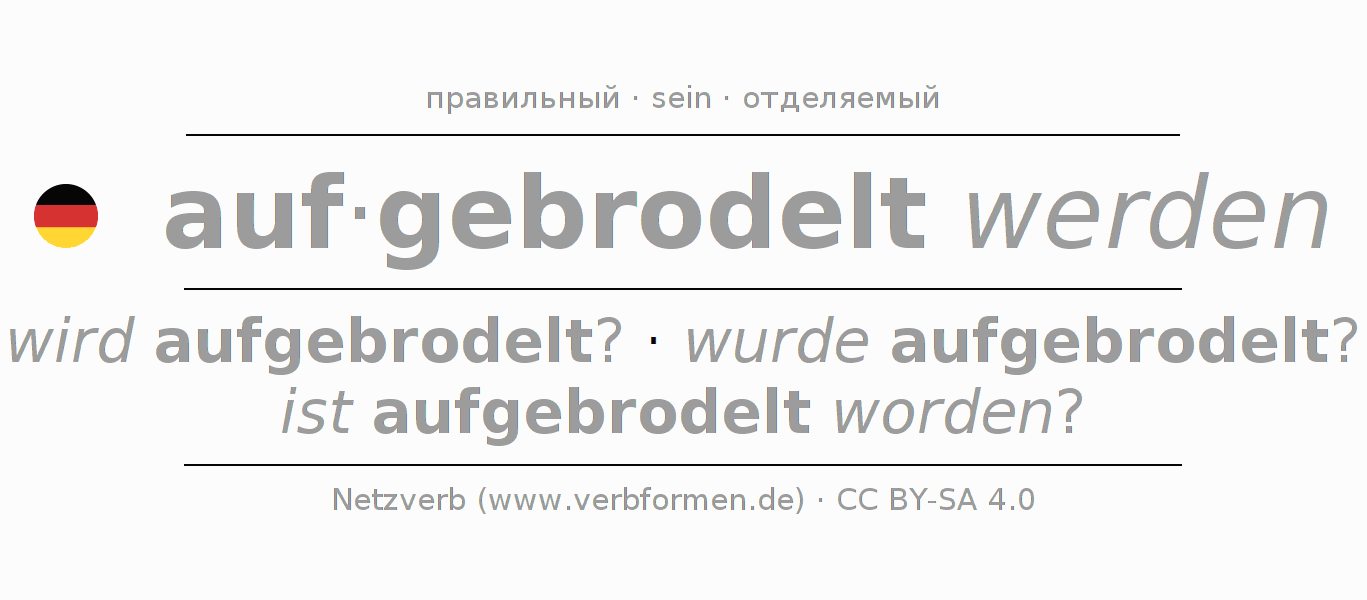 - Инфинитив I: aufgebrodelt werden, aufgebrodelt zu werden