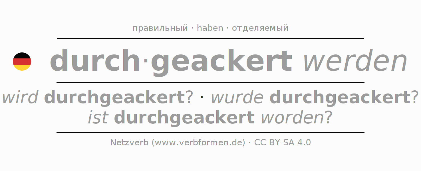- Инфинитив I: durchgeackert werden, durchgeackert zu werden