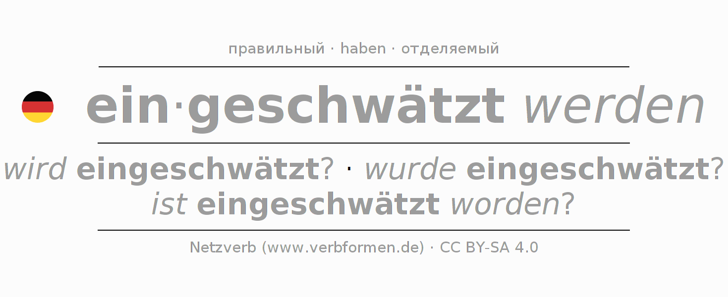 - Инфинитив I: eingeschwätzt werden, eingeschwätzt zu werden